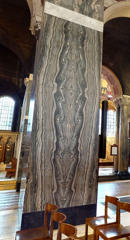 Marmor aus dem Steinbruch Steamstown ist in Kathedralen und öffentlichen Gebäuden zu sehen, darunter die gotische Kirche in Kylemore Abbey, Connemara, die Westminster Cathedral, London (Abb. links). General Post Office, London, und das Museum für Naturgeschichte der Universität Oxfords.