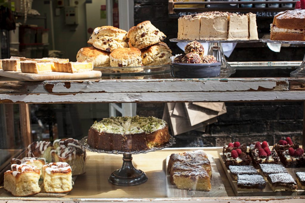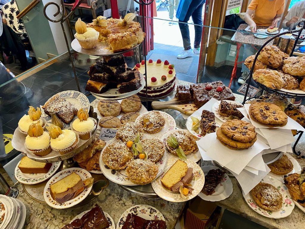 Auch das Brot wird täglich frisch gebacken, ebenso wie die süßen Kuchen, Scones und Tarts, die verführerisch in der Vitrine glänzen.