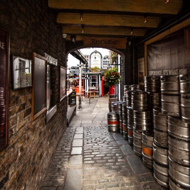 Tatsächlich gibt es hier seit 1198 ein Wirtshaus. Das heutige Gebäude wurde 1754 als Posthalterei erbaut. The Brazen Head wird jedoch bereits 1653 in Dokumenten erwähnt.